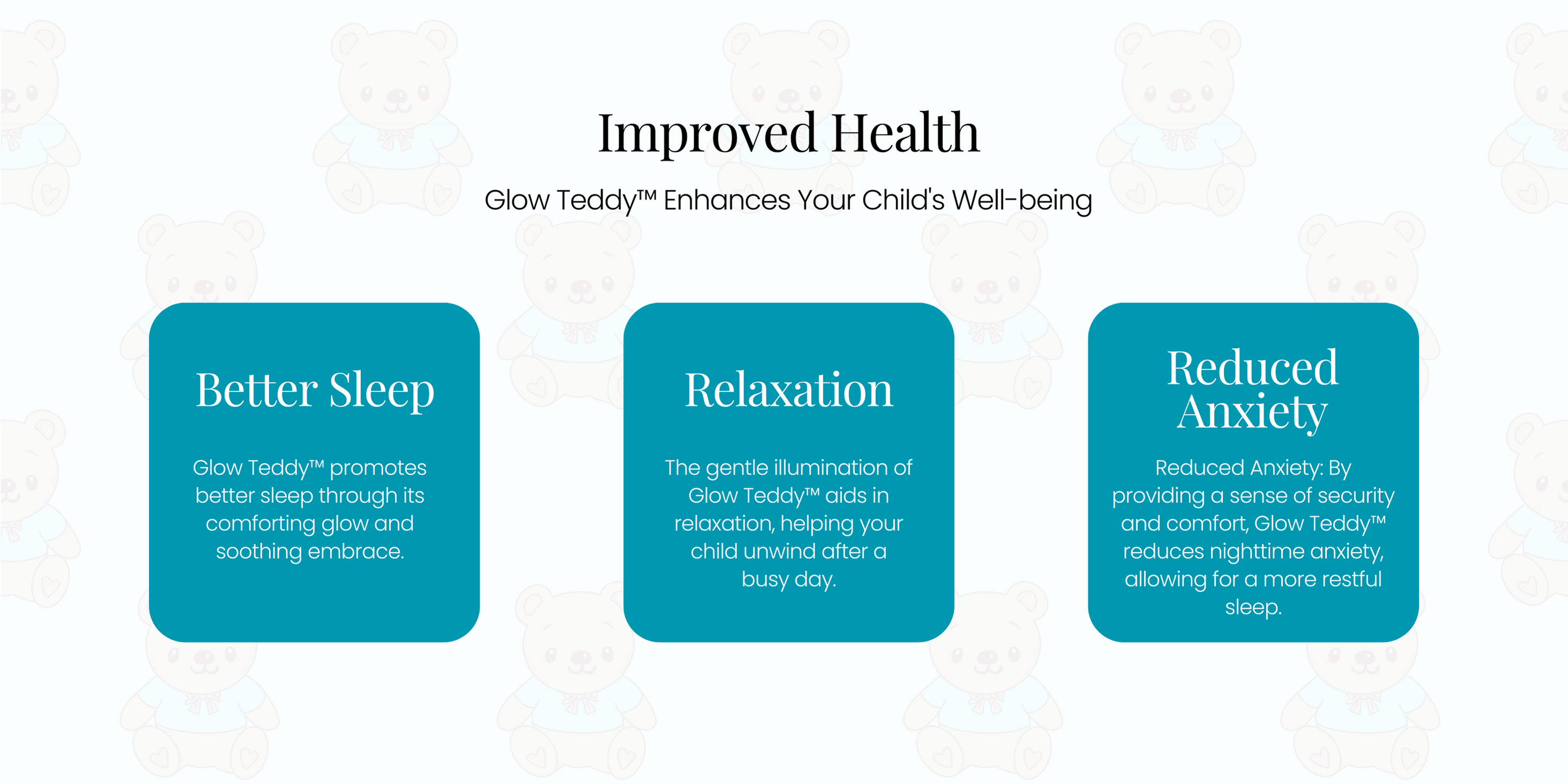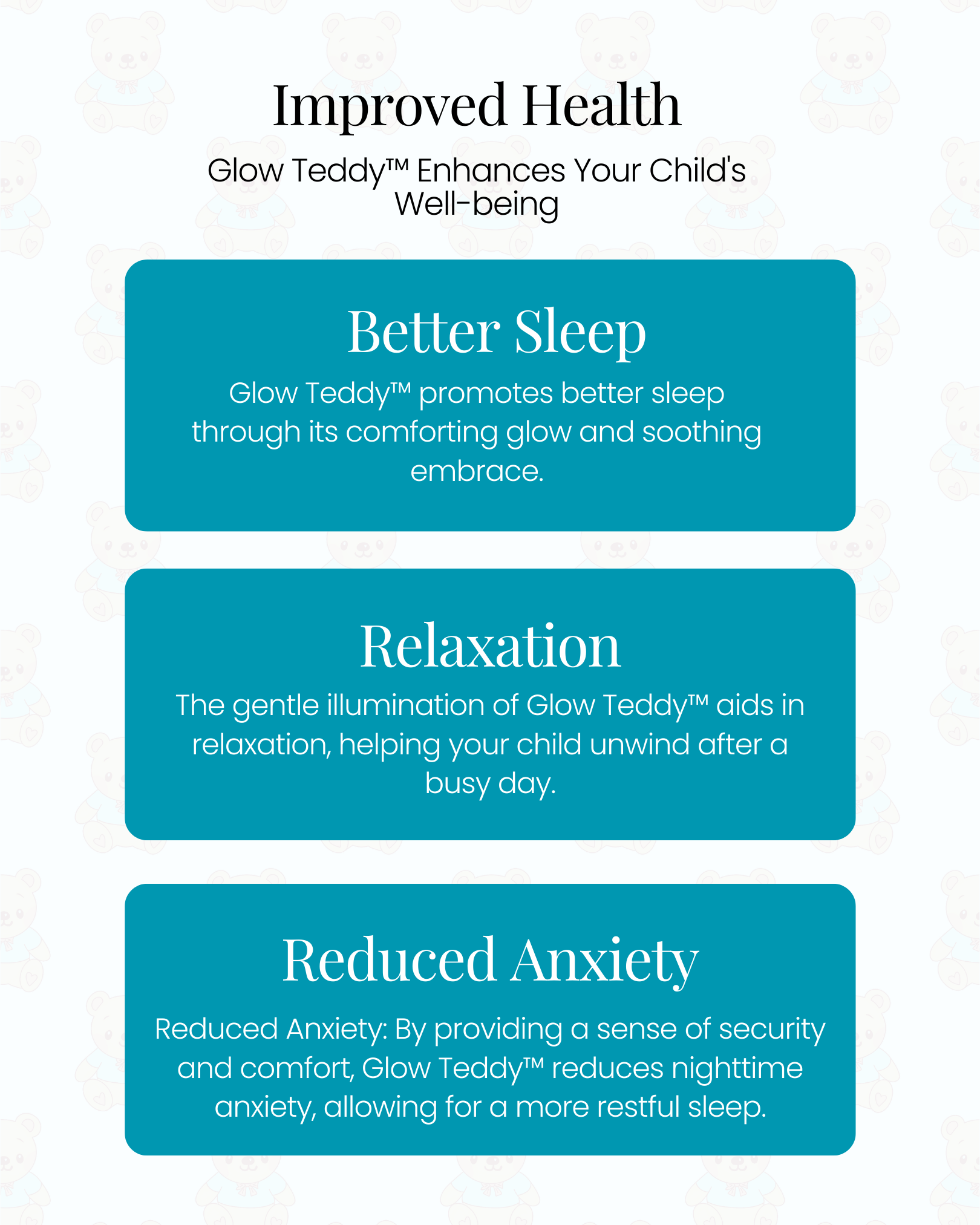 Glow Teddy™ brings a calming glow and a gentle presence, creating the most peaceful and secure environment possible for your little one.